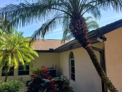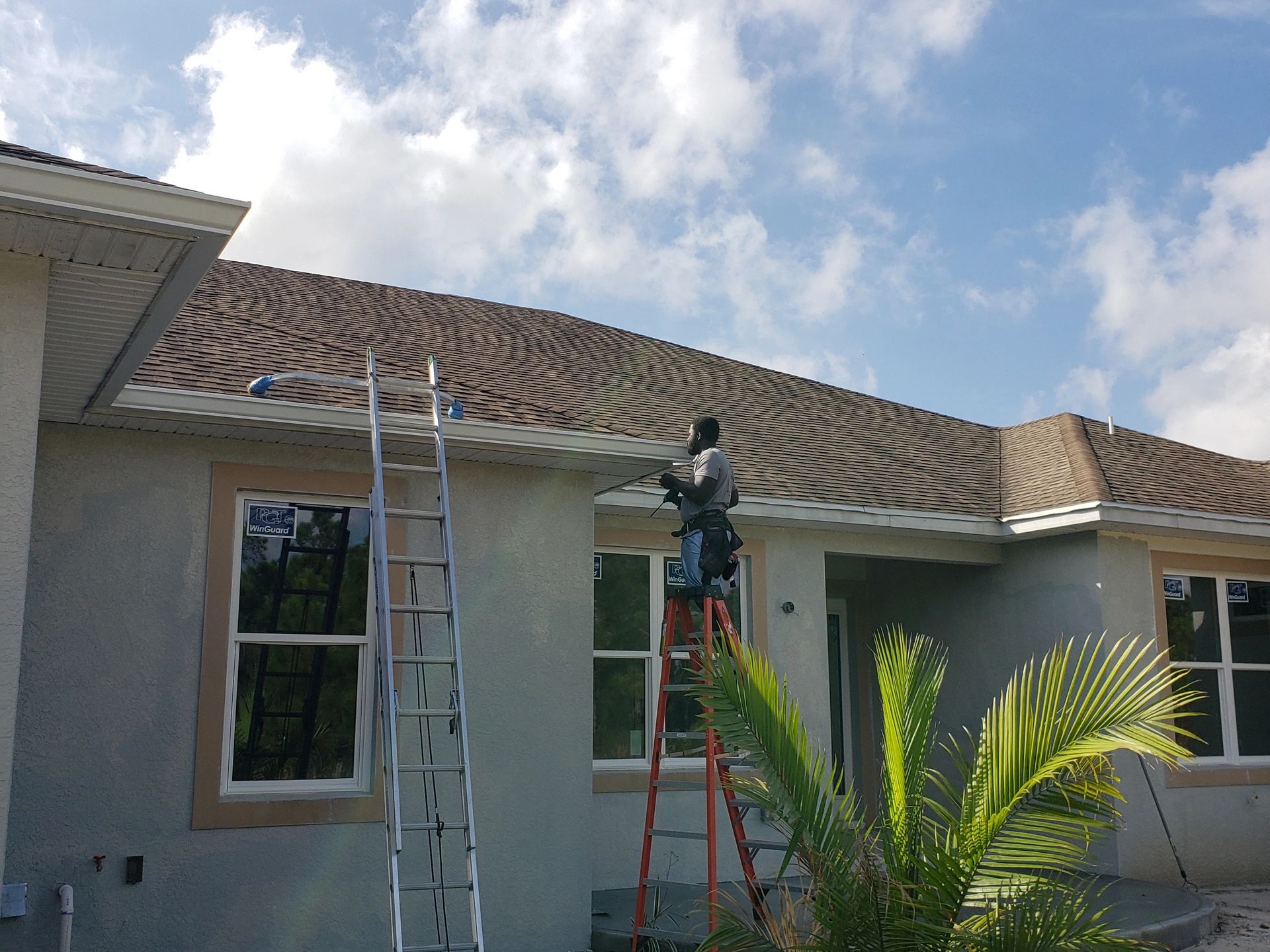 After the enclosure is disconnected from the home all the beams are cut with a template to match the angle of the wood fascia and the size of the SUPER GUTTER. The SUPER GUTTER is then installed with all the fasteners per the Florida Building Code, and the beams are attached to the SUPER GUTTER. Many homeowners choose to do this when they install a new roof. In order for the roofing contractor to complete their job properly, the screen enclosure must be temporarily separated or "backed away" from your home so the roofer has easy access to change the metal drip edge and replace any rotten fascia. A SUPER GUTTER can be installed on your home during this process to protect your roof and wood fascia.